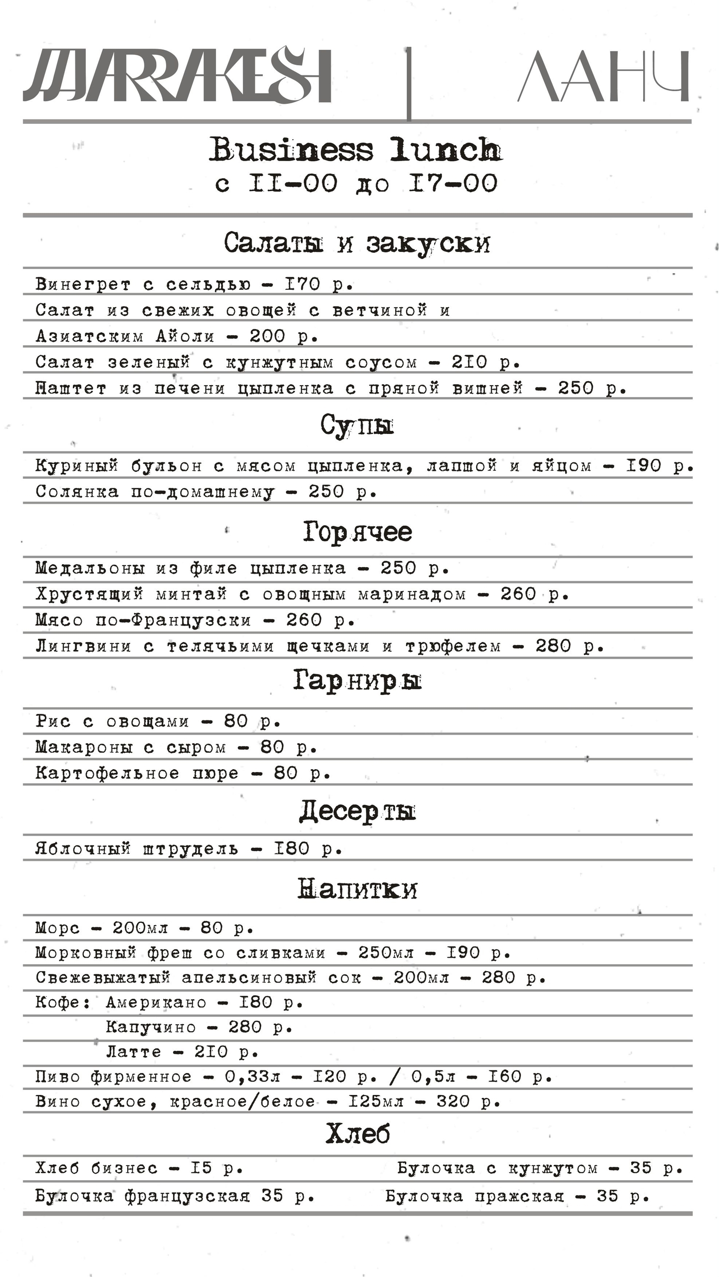 МЕНЮ РЕСТОРАНА